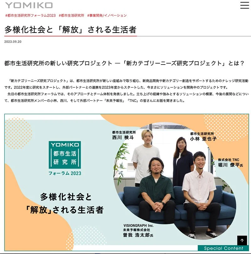 読売広告社 都市生活研究所 と TNC との新しい取り組み「新カテゴリーニーズ研究プロジェクト」がスタート!