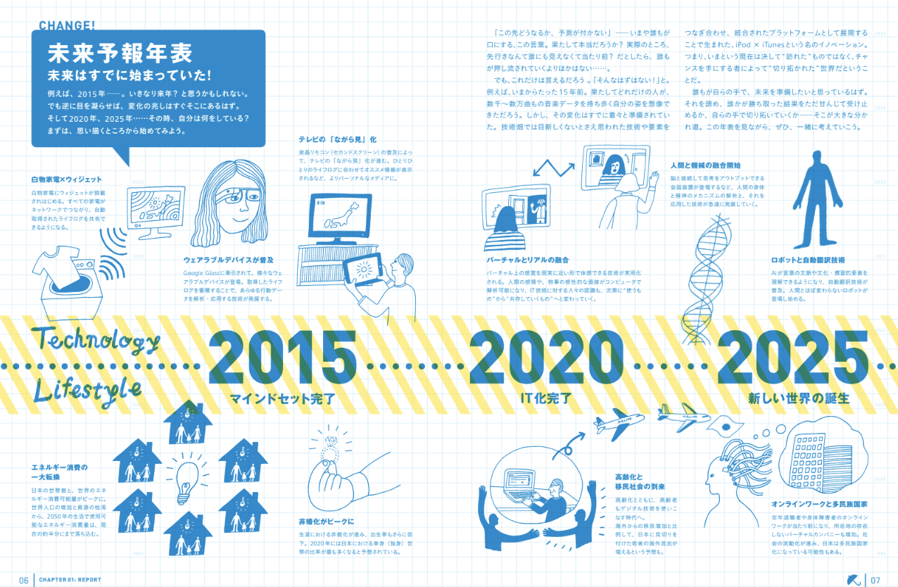 リサーチと仮説推論を通して、未来の社会像や暮らし方、人々の価値観までを明文化した、コンセプチュアルな未来の設定資料を作成します。